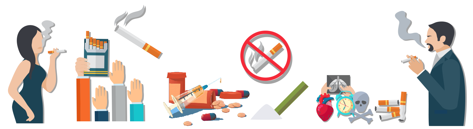• Find out the types of Addiction – Drugs, Alcohol, and Smoke.