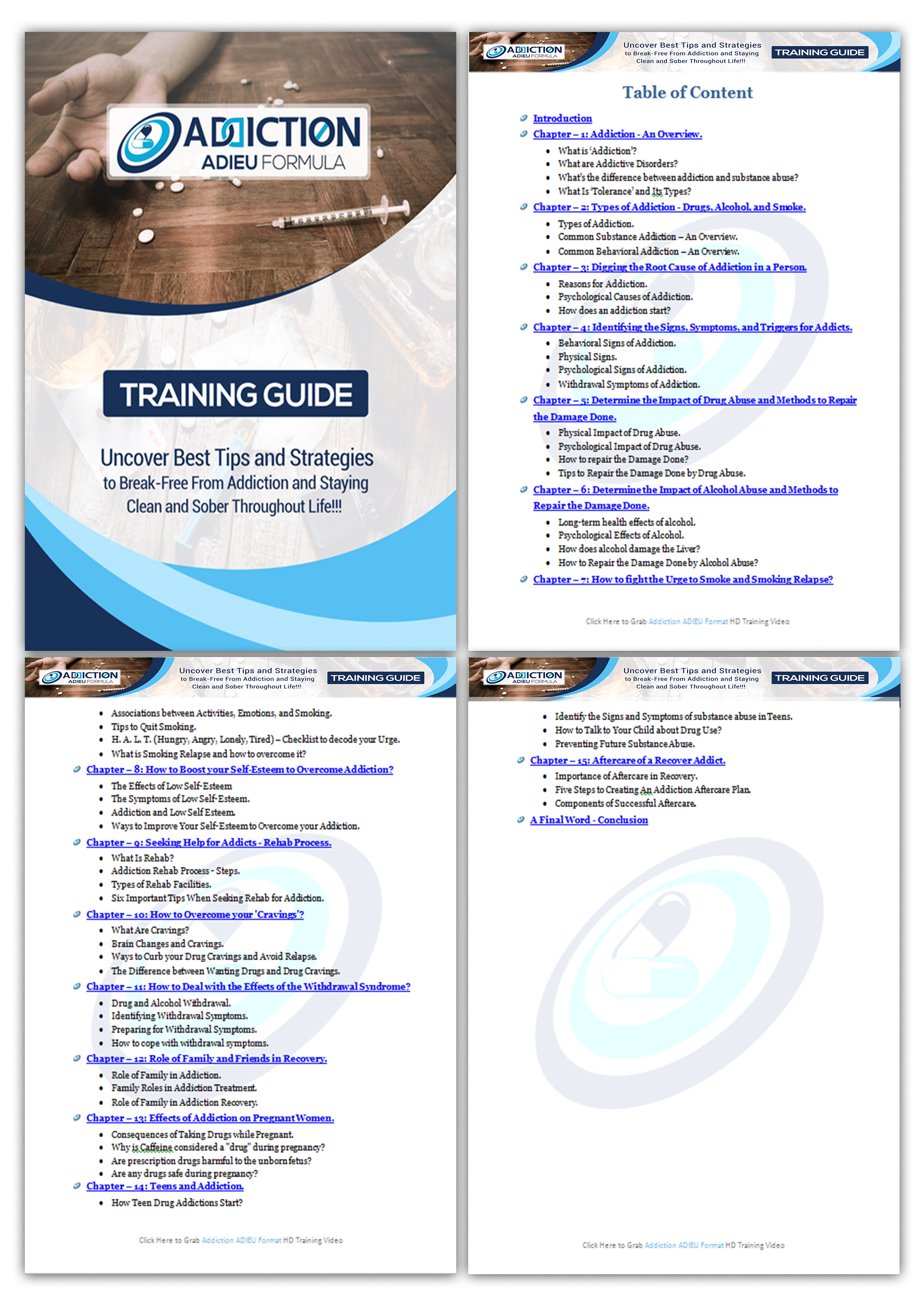 Check out below what all you get in the "Addiction Adieu Formula" Training guide!